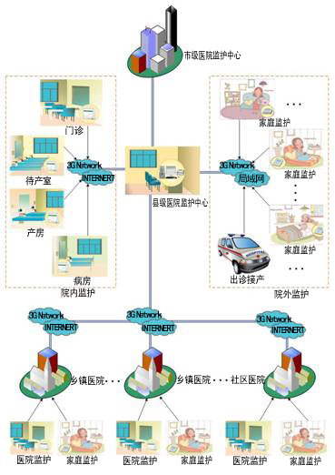 無(wú)線(xiàn)遠(yuǎn)程醫(yī)療監(jiān)護(hù)網(wǎng)絡(luò)系統(tǒng)是利用當(dāng)前最先進(jìn)的云計(jì)算技術(shù)、無(wú)線(xiàn)移動(dòng)通訊技術(shù)和現(xiàn)代互聯(lián)網(wǎng)技術(shù),研制開(kāi)發(fā)的無(wú)線(xiàn)遠(yuǎn)程醫(yī)療監(jiān)護(hù)網(wǎng)絡(luò)系統(tǒng),可同時(shí)將各級(jí)醫(yī)院、醫(yī)院與家庭進(jìn)行互聯(lián),同時(shí)監(jiān)護(hù)病人的心電、血壓、血氧飽和度、脈搏心率及胎兒的瞬時(shí)胎心率、宮縮壓力、胎動(dòng)等參數(shù),實(shí)現(xiàn)遠(yuǎn)程監(jiān)護(hù)、遠(yuǎn)程診斷、不受空間地點(diǎn)的制約,同時(shí)具有遠(yuǎn)程視頻會(huì)診功能和健康咨詢(xún)管理功能。