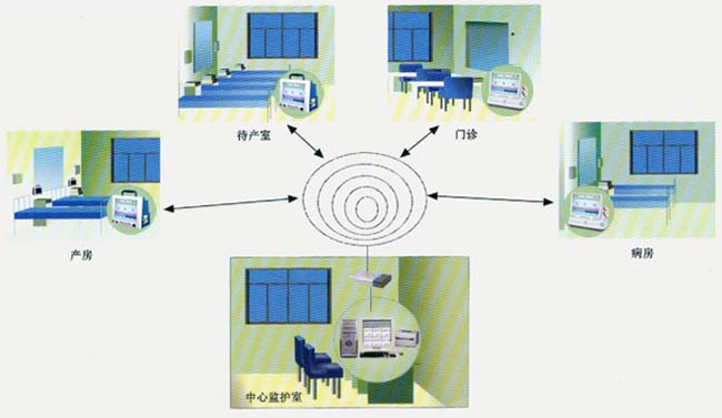 無線中央監(jiān)護系統(tǒng)示意圖