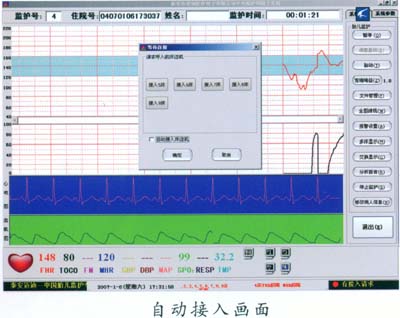 床邊機一開機進入監(jiān)護狀態(tài),孕婦的住院號、姓名及各種監(jiān)護信息自動的傳到中央監(jiān)護主機上,自動啟動中央監(jiān)護工作站開始監(jiān)護,監(jiān)護結束后自動存儲監(jiān)護信息, 實現(xiàn)了自動監(jiān)護無人值班,極大方便了臨床應用。