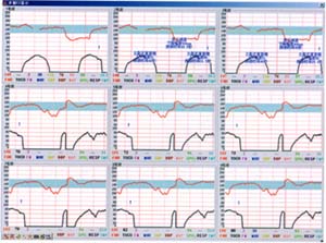 可以同屏顯示長達一小時的監(jiān)護信息,對監(jiān)護信息縱覽無疑,對整個監(jiān)護信息的觀察分析診斷極為方便。