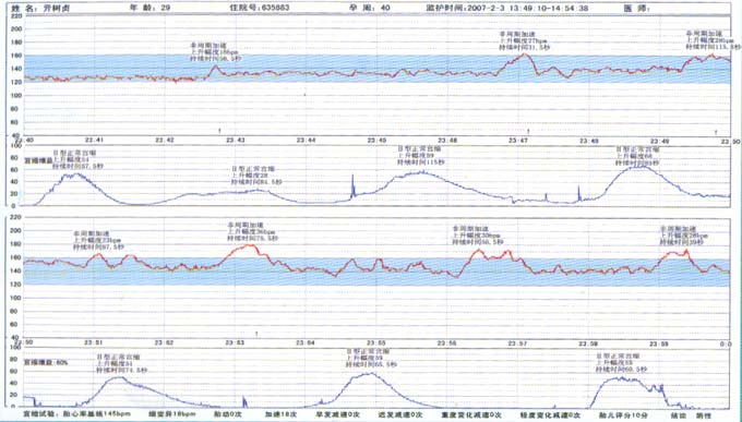 自動(dòng)分析監(jiān)護(hù)過程中,系統(tǒng)實(shí)時(shí)在線自動(dòng)分析所有參數(shù)的變化情況,并給出診斷結(jié)果及胎兒評(píng)分等相關(guān)信息。
